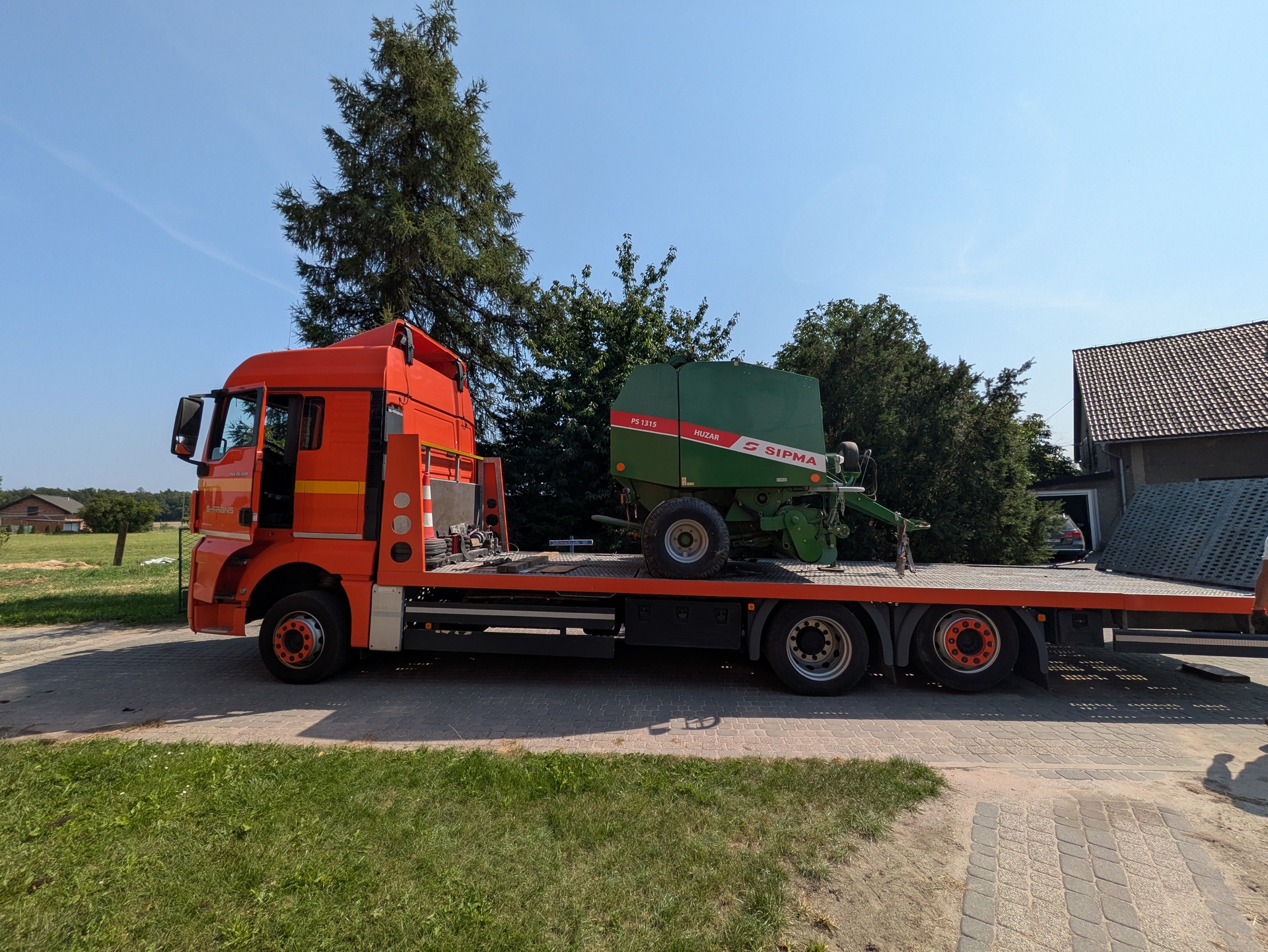 Transport maszyny rolniczej po zakupie przez naszego klienta.
